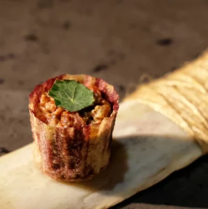 Tartaleta de steak tartar de presa de vaca con salsa XO